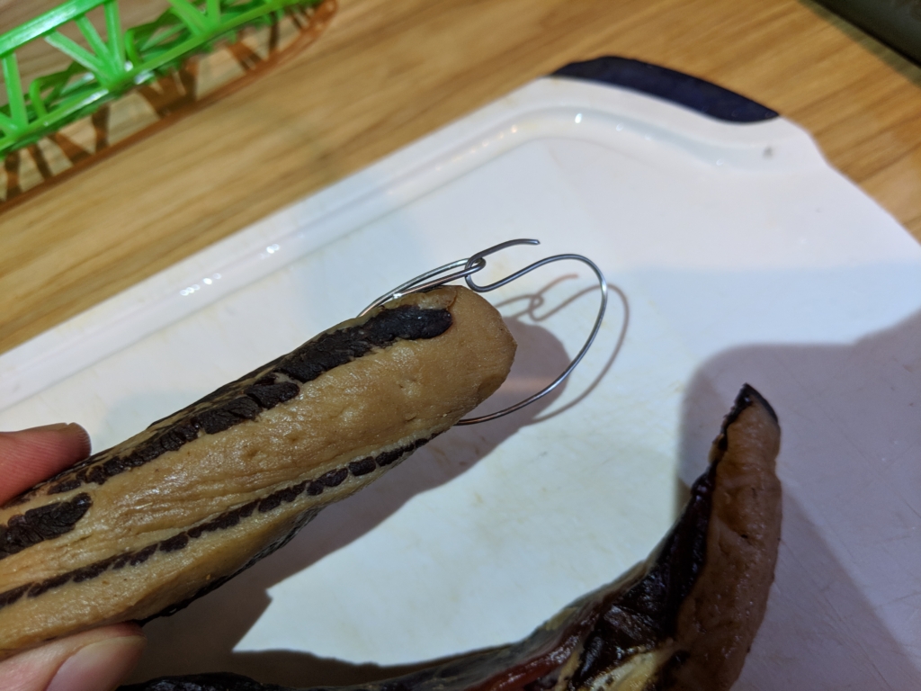 加熱前提の干し肉の場合はこの加工で完成を早められるが生食用の干し肉では穴は開けてはいけない。