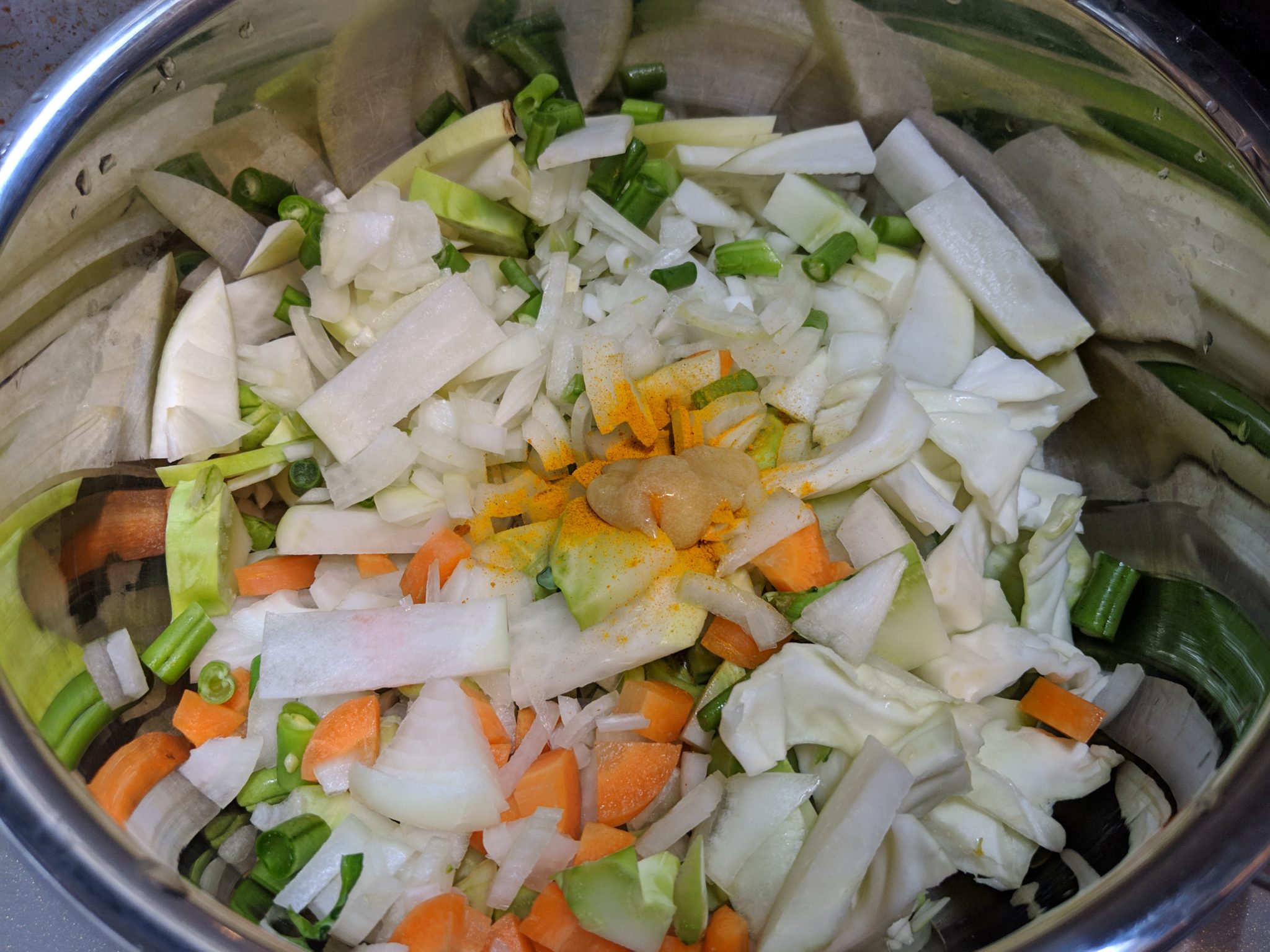 今回は大根とキャベツとオクラとインゲンand otherで作ってみました。