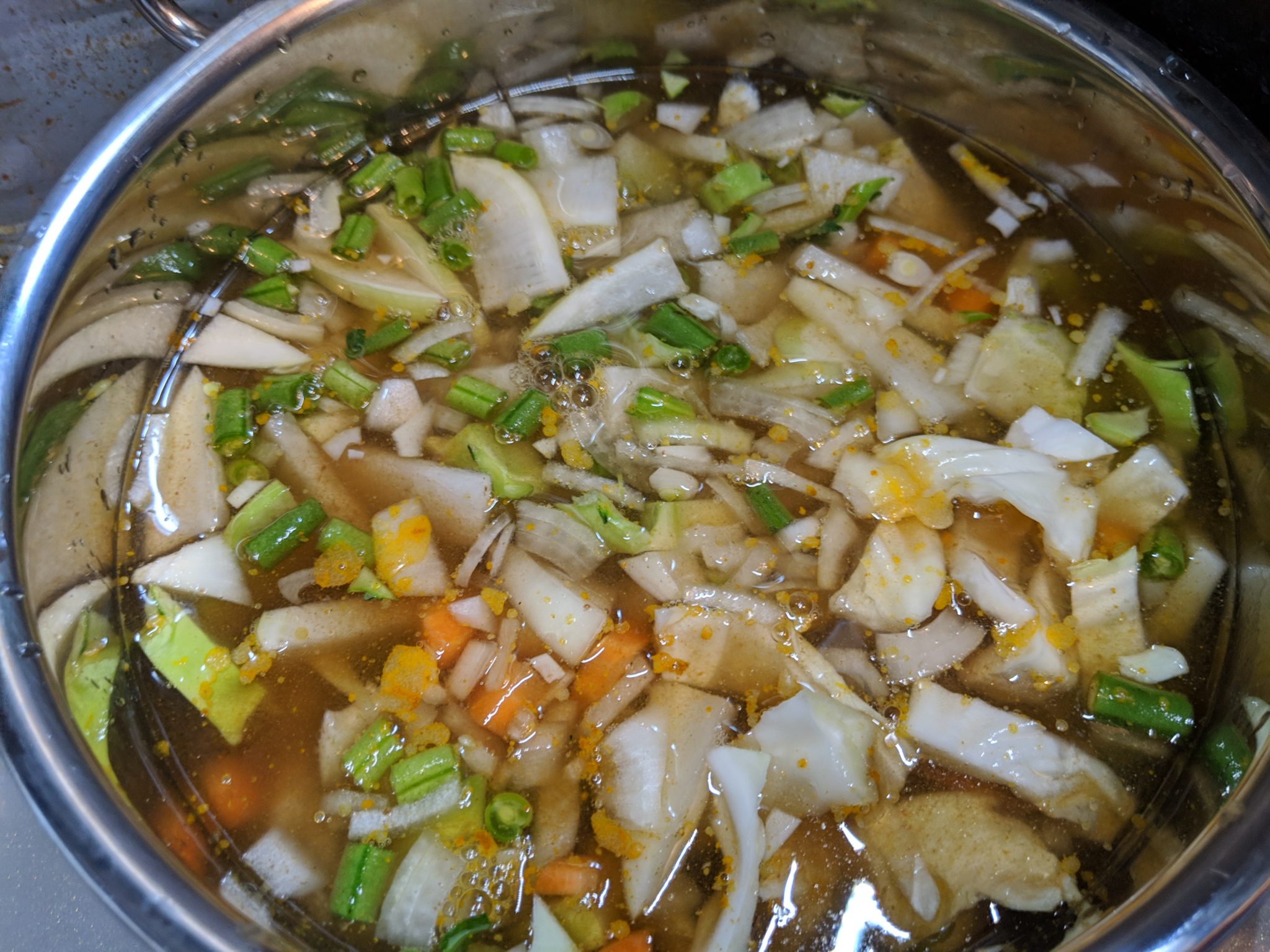 材料は、残った野菜をとりあえず切て煮込めば美味しいスープになります。