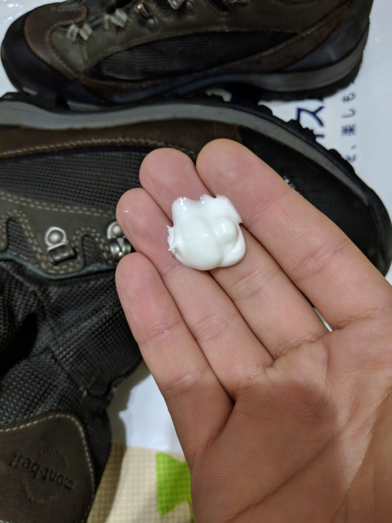 靴の片面に対してこのくらいの量ちょうどポンプ一回分くらい。