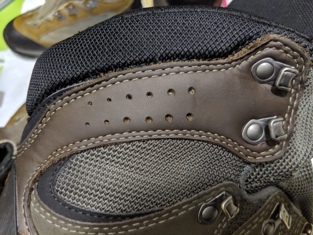 モンベルのツオロミブーツはソール周辺とかかと付近にヌバック革材が使用されており
