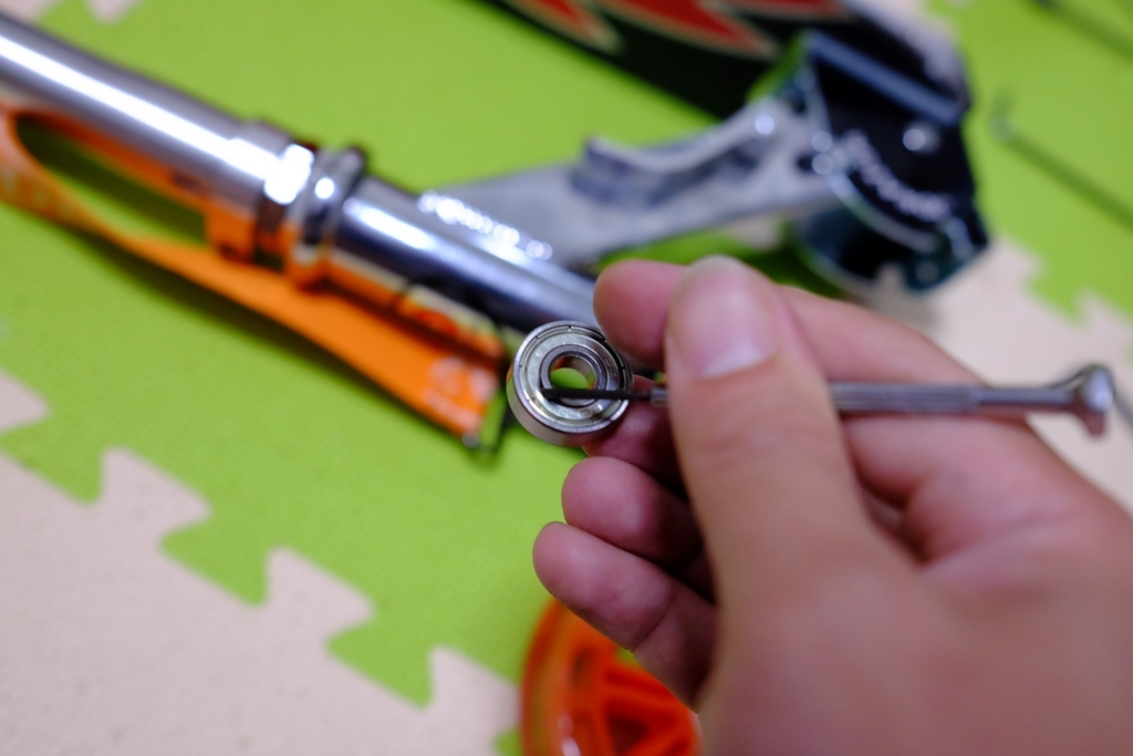 【JD RAZORキックボード改造】買ってソッコウでばらす②(ベアリングの分解とチューニング)