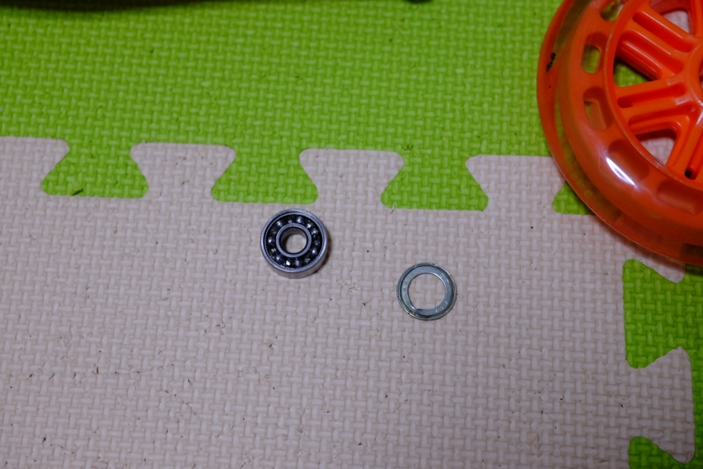 ベアリングをすべて車輪に戻して、元通り組み立てて完成。(カラー忘れないでね)