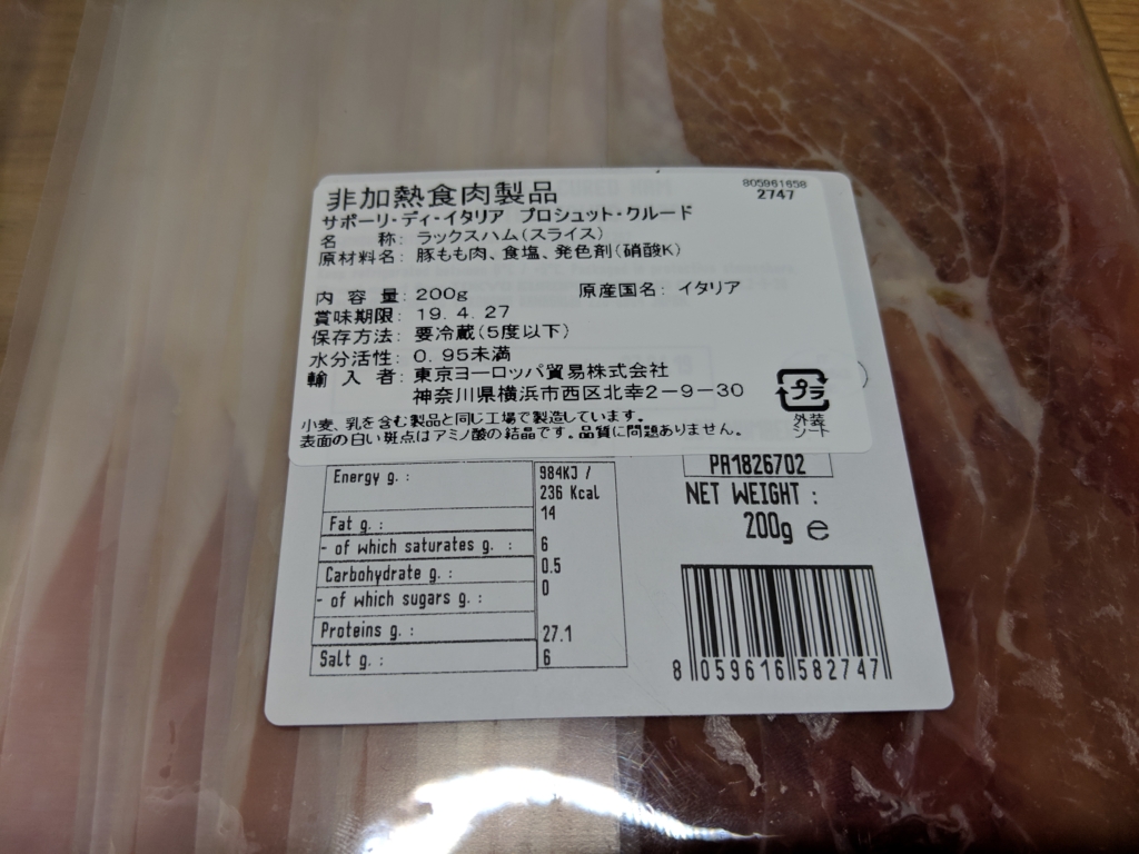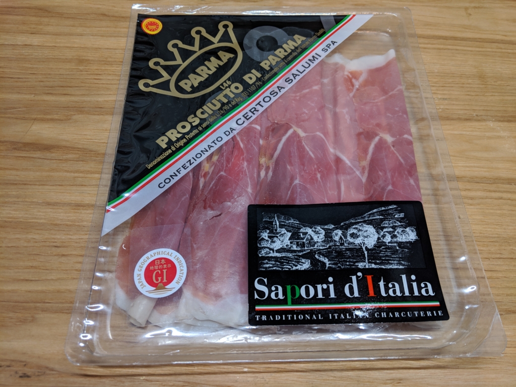 ということで参考資料としてイタリア産の生ハム2種類を入手してきた。