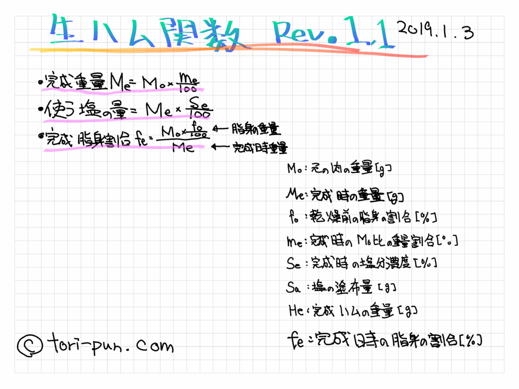 脂身の割合を関数化したので生ハム(ロース)でもパンチェッタ(ばら肉)