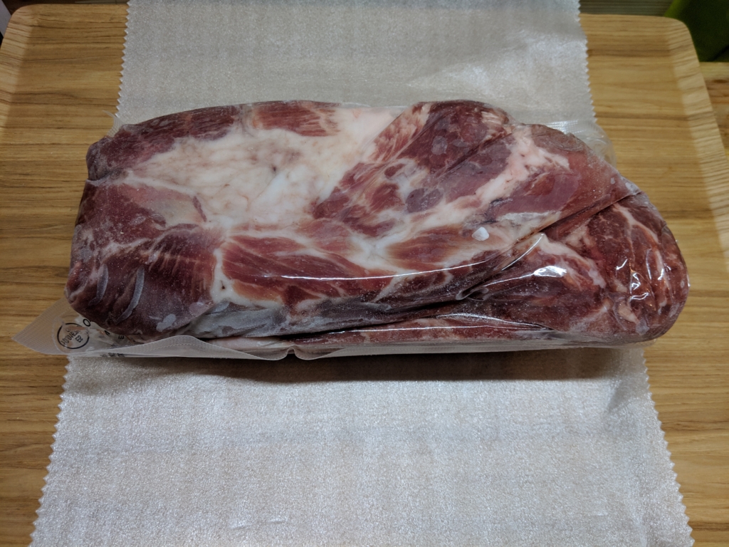 ハモンセラーノに使われていたCOREN社製の「ガリシア栗豚」の肩ロース2.3kgである。