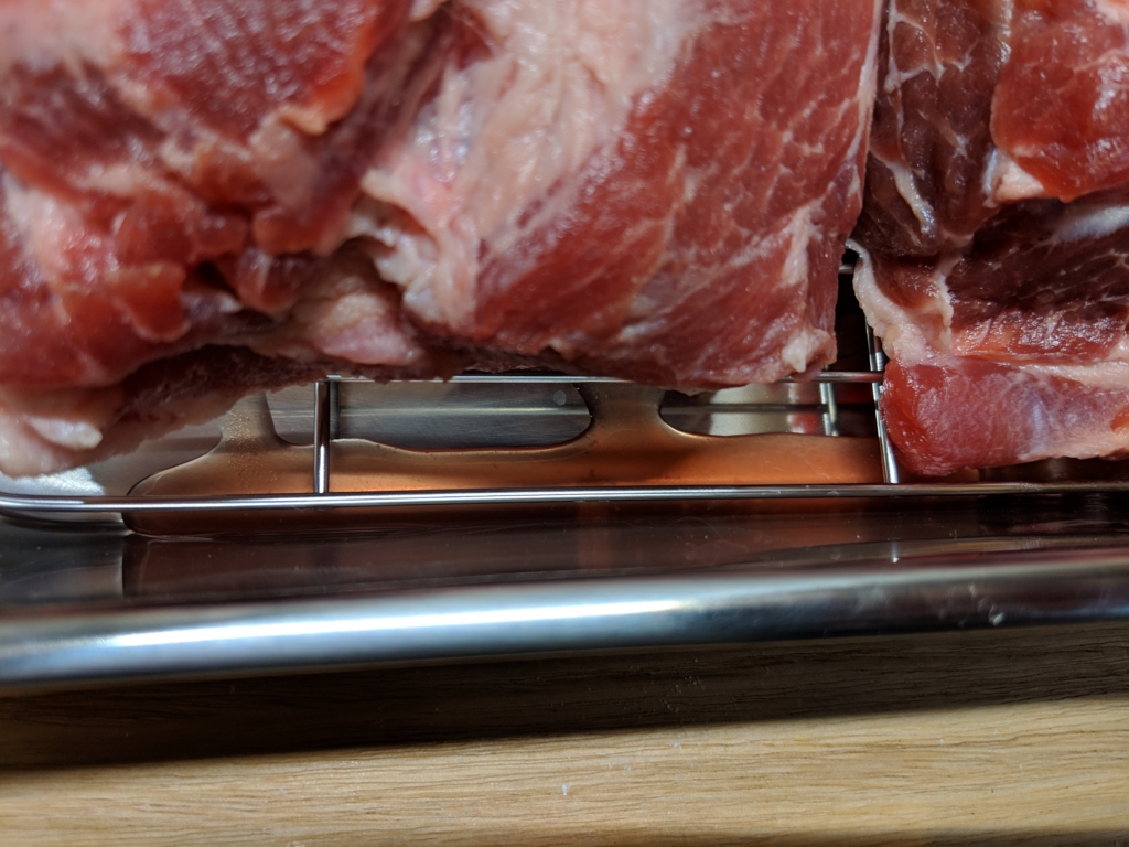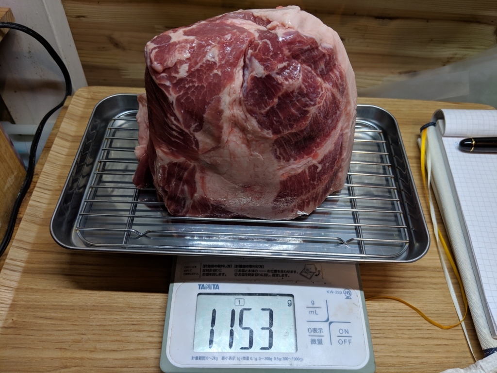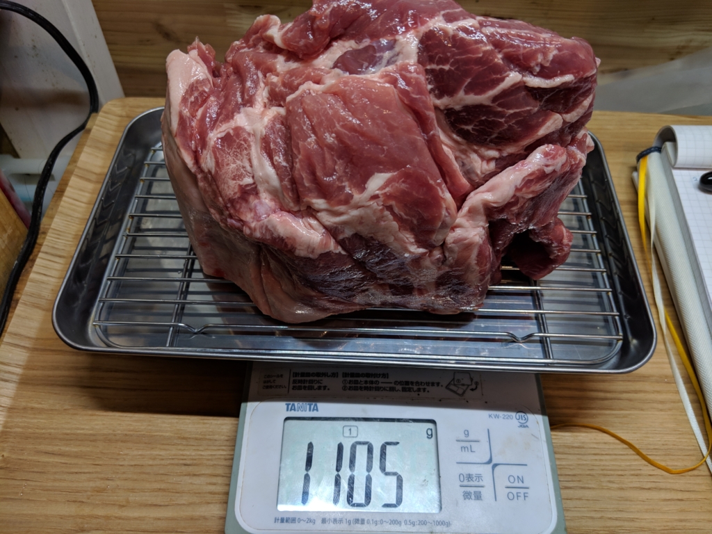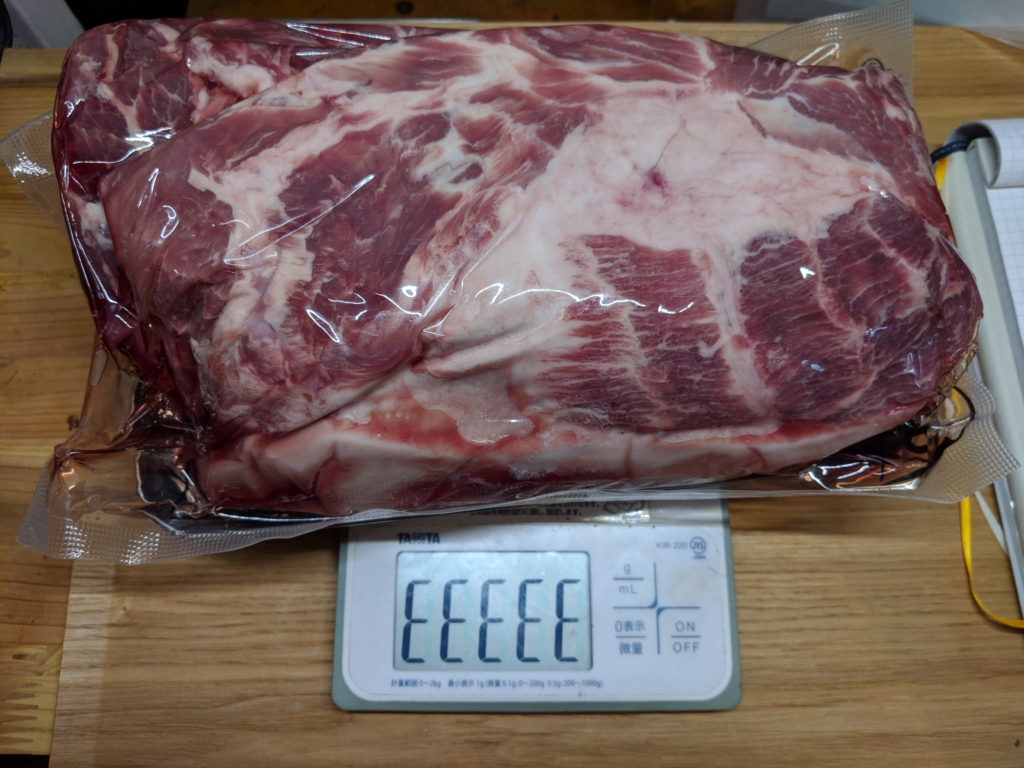 肉塊が巨大すぎて我が家の秤がオーバーフローした。2.3kgである。