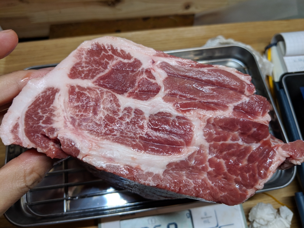 見事な断面、さすがはガリシア栗豚、ブランド豚である。