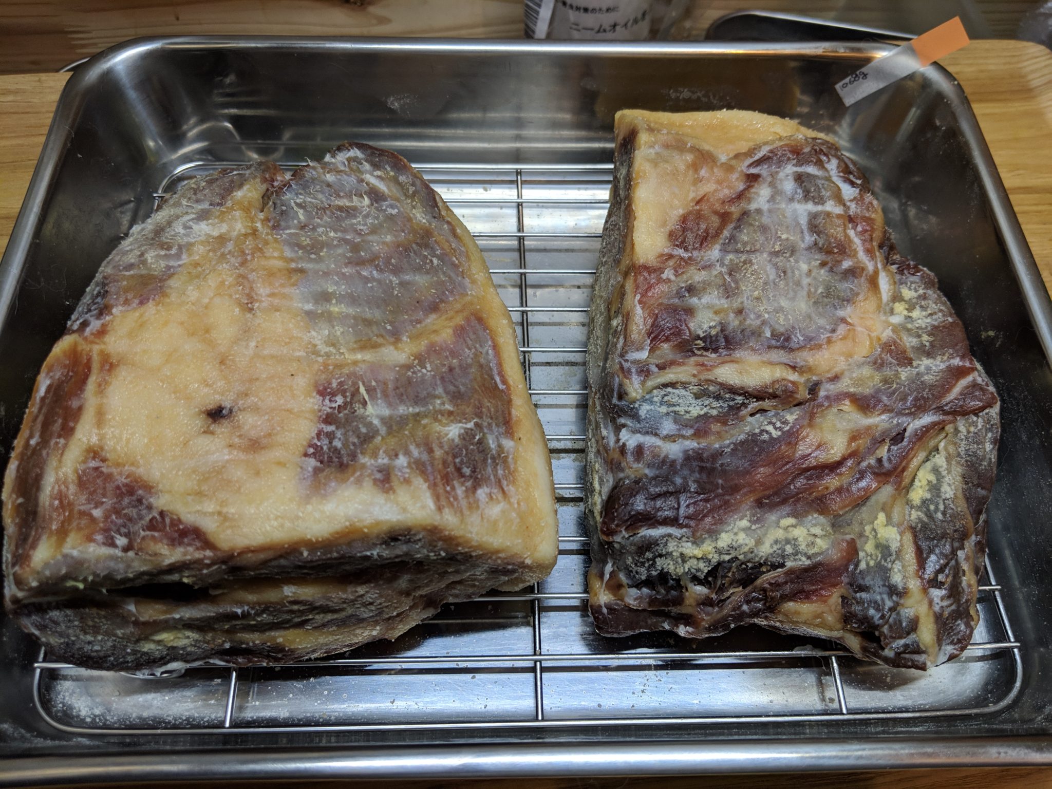 やはり生ハムに使う肉には適度な脂身が必要ということがよく分かる。