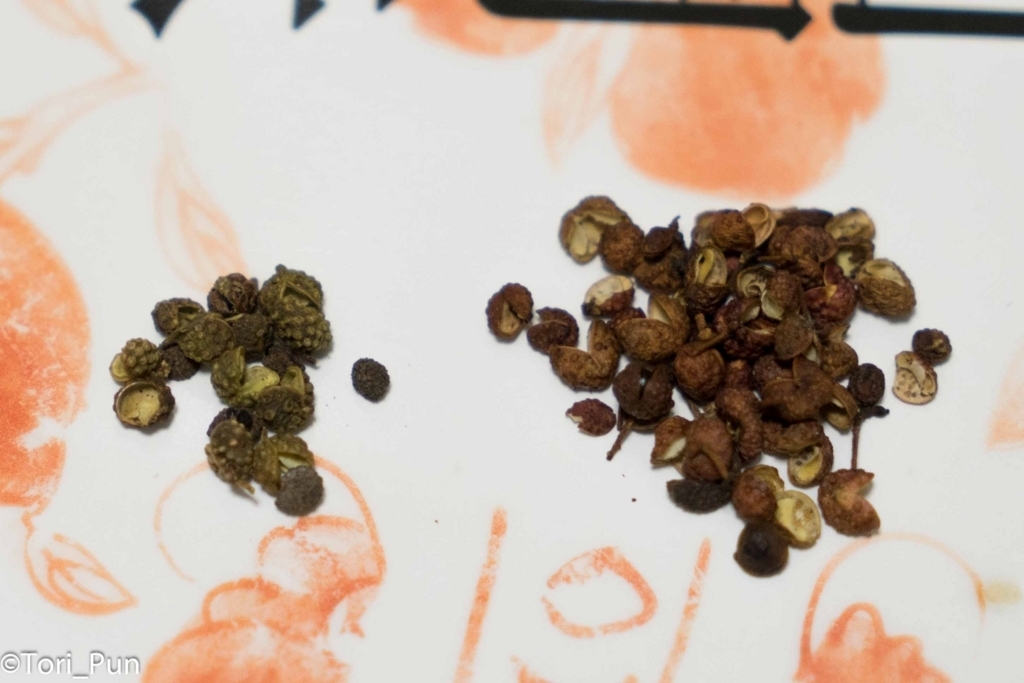 右:花椒(ホアジャオ)(花椒の天日干)