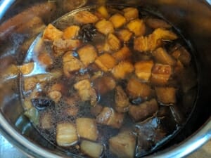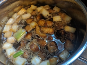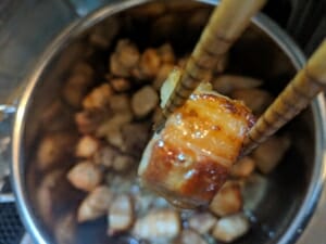 40分後いい感じに豚肉に煮汁が染みてきました。
