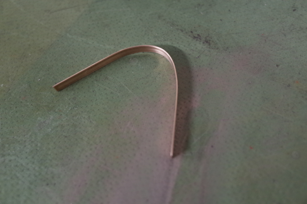 テーブルなどに耐水サンドペーパー(800番とか数字の小さいやつ)を上向きに置いて、曲げ終わったタングスクレイパーを削りましょう。(両面テープなんかで張っても良いですね)